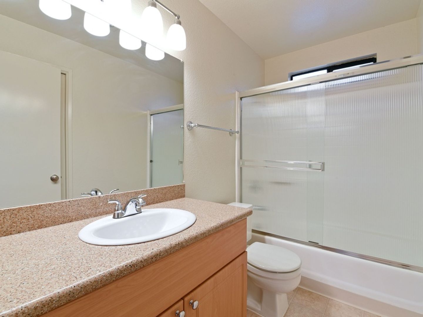 • Well-appointed bath(s) with vanity, chrome plumbing fixtures and easy-care tub/shower surround with glass enclosure